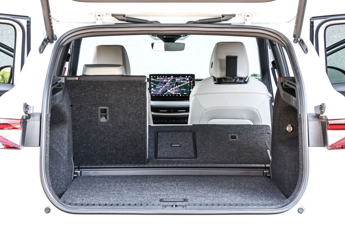 Enyaq wykracza poza segment kompaktowych SUV-ów – tak jak jego kufer, który pomieści od 585 do aż 1710 litrów bagażu. / fot. Daniela Loof/AZ