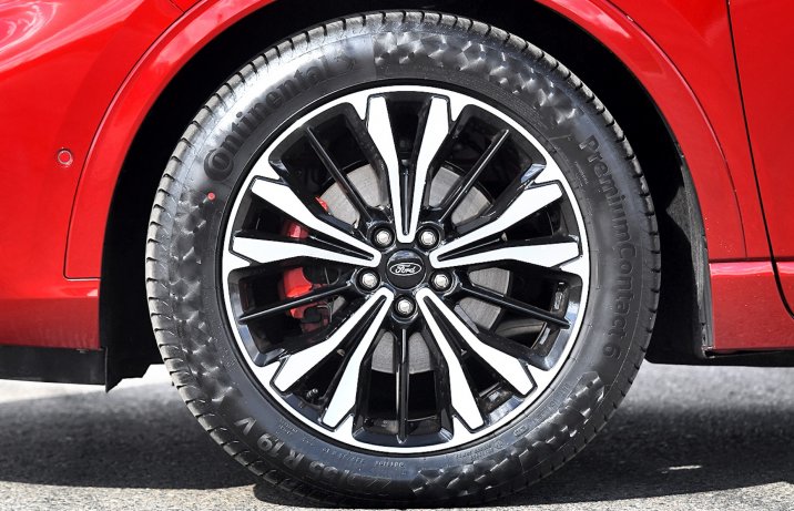 19-calowe felgi Forda (część pakietu ST-Line za 3050 zł) otacza sporo gumy – opony mają rozmiar 225/55.