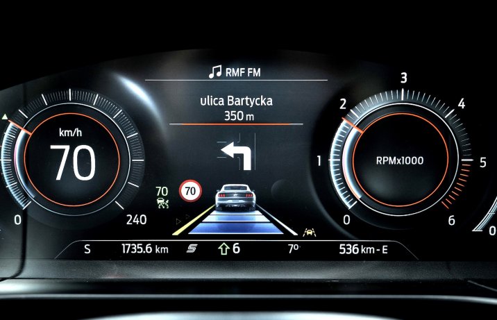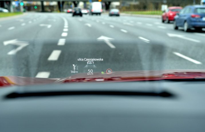 Kolorowy i czytelny ekran head-up. Szkoda, że wyświetlany na płytce pod szybą, a nie na samej szybie.