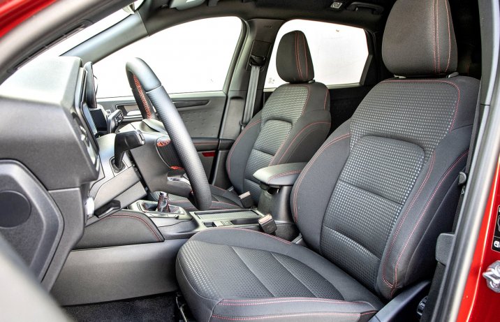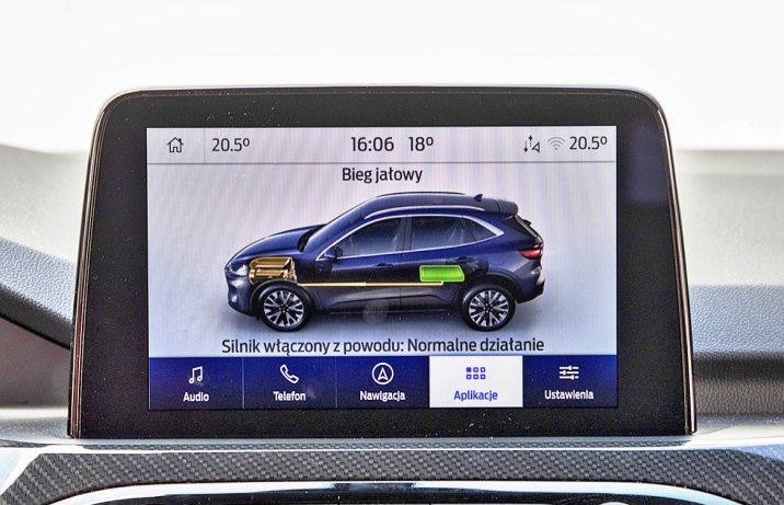 Testowane Kugi miały tzw. klejone szyby boczne – dwie tafle szkła są zespolone przezroczystym tworzywem sztucznym, które wzmacnia szybę, utrudniając np. włamanie, i poprawia izolację akustyczną. Komfort jazdy dodatkowo zwiększały przednie szyby SoundScreen z warstwą dźwiękochłonną. W hybrydach na postoju nie zawsze panuje idealna cisza – bezpośrednio po włączeniu (także plug-ina z rozładowanym akumulatorem) uruchamiany był silnik benzynowy.