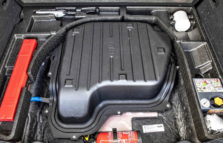 MHEV: tylko zestaw naprawczy. Miękka hybryda ma w bagażniku akumulator o napięciu 48 V i pojemności 0,5 kWh. Jedno hamowanie ze 120 km/h ładuje go do połowy.