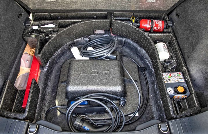Mimo że mieliśmy do czynienia z jednym modelem, każda z trzech Kug miała inaczej zaaranżowaną przestrzeń pod podłogą bagażnika. Najpojemniejsze były przegródki w hybrydzie plug-in, która nie miała koła zapasowego (opcja).
