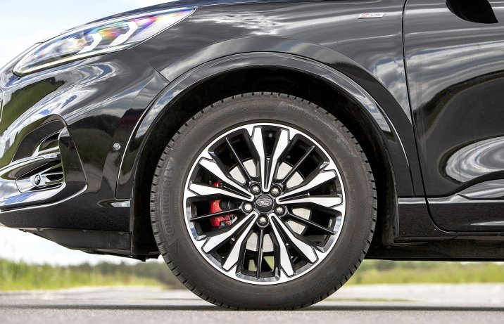 Jedynie wprawne oko będzie w stanie rozpoznać z zewnątrz typ napędu w Kudze. Jest to najłatwiejsze w przypadku hybrydy typu plug-in, na której przednim lewym błotniku umieszczono klapkę gniazda do ładowania. Bezpośrednio za progami znajdują się czarne struktury – to osłona pakietu akumulatorów. Prześwit mierzony od podłoża do tego elementu wynosi 17,5 cm.