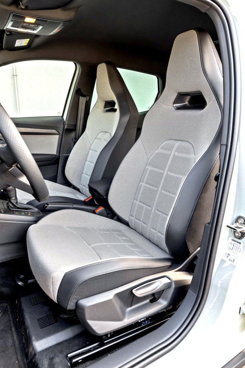 Seat, podobnie jak Ford, ma szereg mocnych stron, a wśród nich: szybko reagujący ekran, najlepsza widoczność w przód, czytelne wskaźniki z najbardziej rozbudowanymi możliwościami indywidualizacji wskazań oraz szereg estetycznych akcentów w kokpicie. Pozycja za kierownicą jest dość wysoka, a fotele wersji FR ze zintegrowanymi zagłówkami są całkiem obszerne, jednak brakuje im regulacji podparcia lędźwiowego. Przywyknąć trzeba również do nieco „rozczłonkowanego” menu – dostęp do różnych ustawień początkowo wymaga zgłębienia jego struktury.