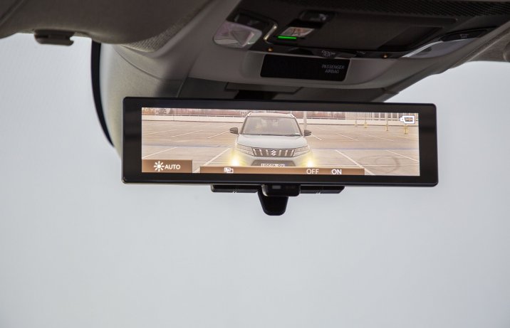 Obraz w cyfrowym lusterku wstecznym reguluje się przyciskami u dołu (m.in. pozycja i obrót). Można też włączyć tryb „zwykłego” zwierciadła.