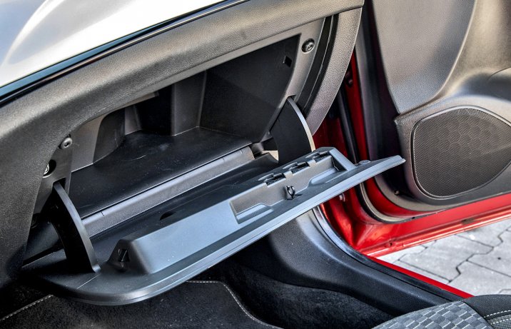 Opel ma największy schowek przed pasażerem w stawce (za to ten w Skodzie oferuje miękką wykładzinę).