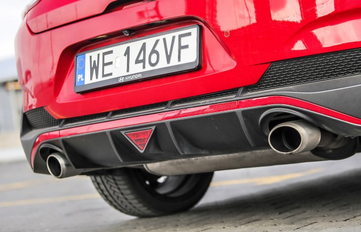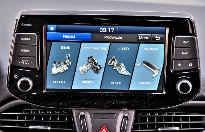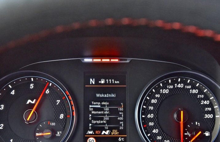 Szczególnie po uruchomieniu 2-litrowego silnika, któremu wtóruje świetnie skomponowana ścieżka dźwiękowa. O ile w podstawowych ustawieniach auta (Normal i Eco) wydech brzmi donośnie, szczególnie na zewnątrz, o tyle w trybach Sport i N (jest też Custom, który można samodzielnie skonfigurować) po wduszeniu gazu i30 N ryczy niczym auta kategorii WRC. Mocny, basowy dźwięk jest dodatkowo potęgowany za pomocą strzałów spod zderzaka przy szybkiej zmianie biegu na wyższy i po odpuszczeniu prawego pedału, choć jedynie przy obrotach bliskich maksymalnym. Także w kabinie i30 sprawia wrażenie auta, które nie próbuje łapać kilku srok za jeden ogon.