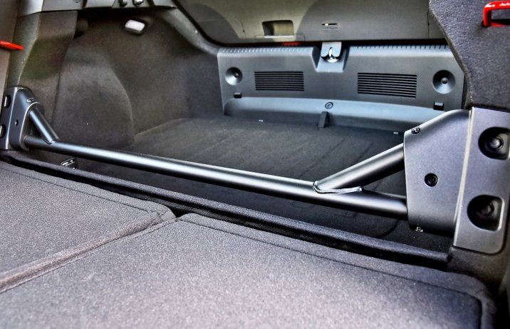 Mocno wyprofilowany fotel (elektrycznie ustawiany) z wysuwaną podpórką lędźwiową jest po sportowemu sztywny, ale i wystarczająco wygodny na co dzień (szkoda, że siedzi się nieco za wysoko). Kierownica, z grubym niczym w BMW wieńcem, świetnie leży w dłoniach i została zaopatrzona w przyciski wyborów trybu jazdy. Nad obrotomierzem (jak w modelach BMW M GmbH) widnieją diody, które gasną wraz z rozgrzewaniem się silnika, a nad ekranem komputera pokładowego – kolejne, informujące o zbliżaniu się 2-litrowej jednostki do ogranicznika obrotów i konieczności zmiany biegu na wyższy. Lewarek ma krótki, sportowy skok i wyróżnia się wysoką precyzją.