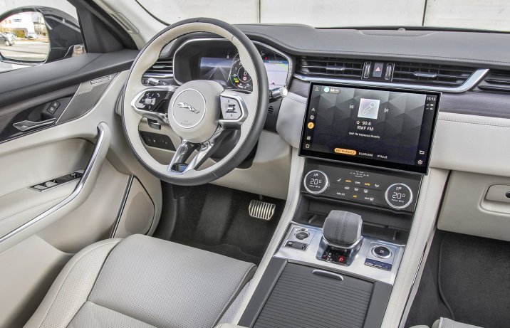Hybrydowy napęd plug-in korzysta z połączenia 300-konnego silnika 2.0 R4 turbo oraz 143-konnej jednostki elektrycznej. Czuć, że jego siła jest potężna (404 KM, 640 Nm), dawkowanie momentu obrotowego odbywa się zaskakująco kulturalnie, a 8-biegowy automat reaguje całkiem „przytomnie”, choć to napęd raczej do okazjonalnych sprintów i codziennej efektywnej jazdy „na prądzie”. Jaguara wyposażono w pojemny akumulator (17,1 kWh brutto/13,8 kWh netto), który zapewnia 40-45 km realnego zasięgu, oraz rozbudowane możliwości ładowania (AC 7 kW i szybkie ładowanie DC 32 kW).