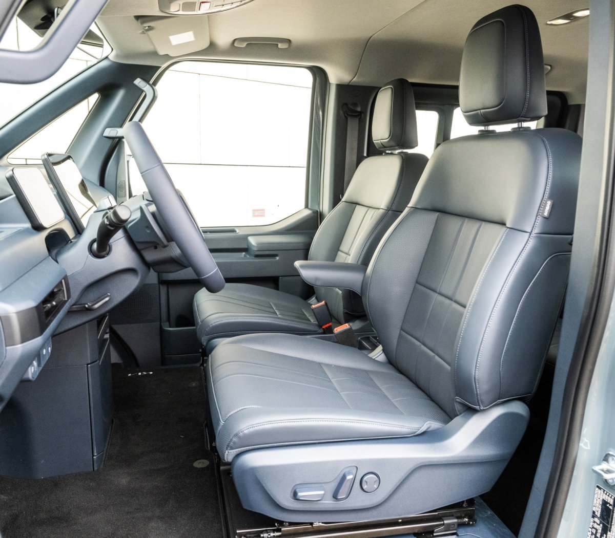 Siedzenia jak w typowym aucie osobowym. Ekoskóra i elektryczna regulacja – za dopłatą. Pod fotelami znajdują się zamykane schowki. / fot. Kacper Szczepański/Motor