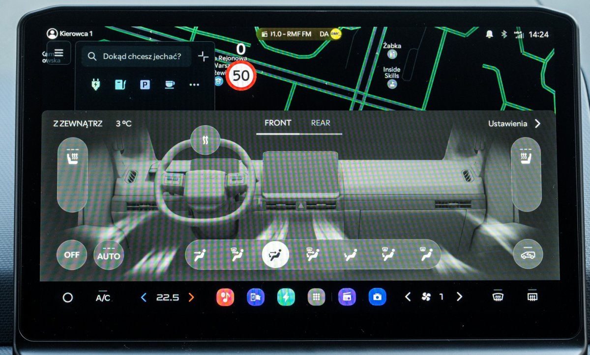 Częścią ustawień klimatyzacji można sterować na stałym pasku, ale ikony są zdecydowanie za małe. / for. Kacper Szczepański/Motor
