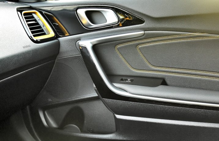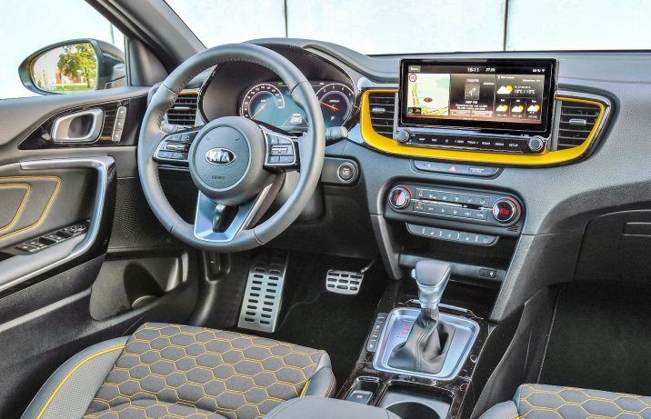 Mimo że kabinę urządzono z „klocków” wykorzystanych już w innych odmianach Ceeda, ta w XCeedzie prezentuje się po prostu lepiej. Wykonano ją z mieszaniny tych samych bardzo dobrych i niezłych materiałów, ale „podkręcono” przez liczne elementy z wykończeniem w fortepianowej czerni oraz pakiet „Yellow Splash” (1000 zł – aktualnie darmowo). Obok czarnej podsufitki i żółtych obramowań nawiewów zawiera on wykończone czarną skórą boczki drzwi z przeszyciami w żółtym kolorze oraz tapicerkę skórzano-materiałową z kontrastującą nitką.