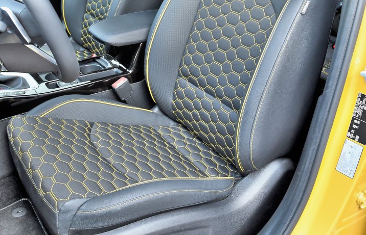 Obszerne, niezbyt sztywne fotele zapewniają pewne trzymanie boczne. Zagłówki ustawia się w dwóch płaszczyznach. Sporo miejsca i dobra pozycja za kierownicą.