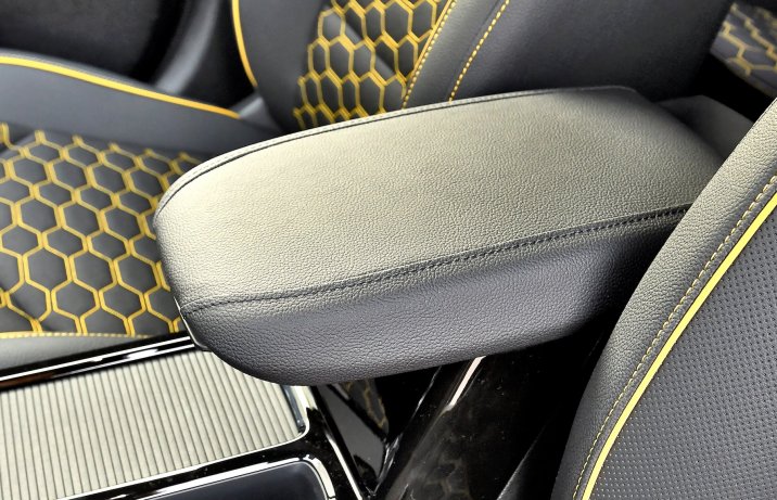W górnej części deski rozdzielczej, którą wykonano z miękkiego plastiku, znalazły się prawdziwe szwy.