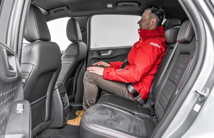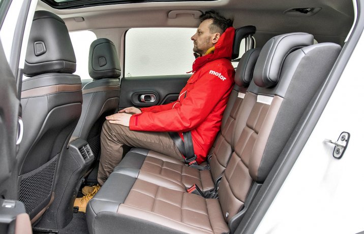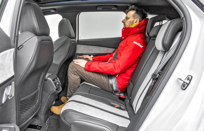 Jadący z tyłu mają sporo miejsca w każdym kierunku, ale mogą narzekać na zbyt pionowo ustawione oparcie i wysoki tunel na podłodze.