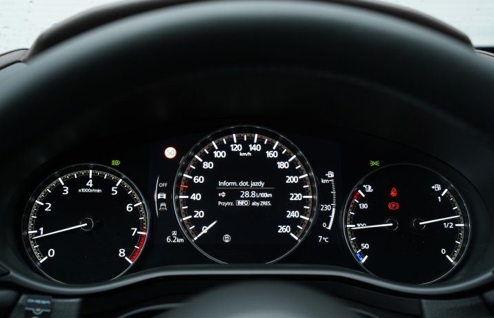 Czy trud włożony w zaprojektowanie innowacyjnego silnika przyniósł spodziewane efekty? Jednostka Skyactiv-X imponuje równomiernością oddawania mocy i wysoką kulturą pracy. Siły napędowe są rozwijane niczym w wolnossącym silniku o dużej pojemności. Nie doświadczymy tu żadnych skokowych przyrostów mocy. W przeciwieństwie do wielu doładowanych jednostek po downsizingu silnik Mazdy nie słabnie w okolicach czerwonego pola obrotomierza. Wręcz przeciwnie – powyżej 5000 obr./min wyczuwalny jest lekki zastrzyk mocy. Skyactiv-X pracuje także bardzo kulturalnie – nie ma mowy o wibracjach czy nieprzyjemnych hałasach. Przy ruszaniu konieczne jest jednak wzmożenie uwagi. Po dodaniu zbyt małej ilości gazu i szybkim zwolnieniu sprzęgła silnik można zaskakująco łatwo zdławić.