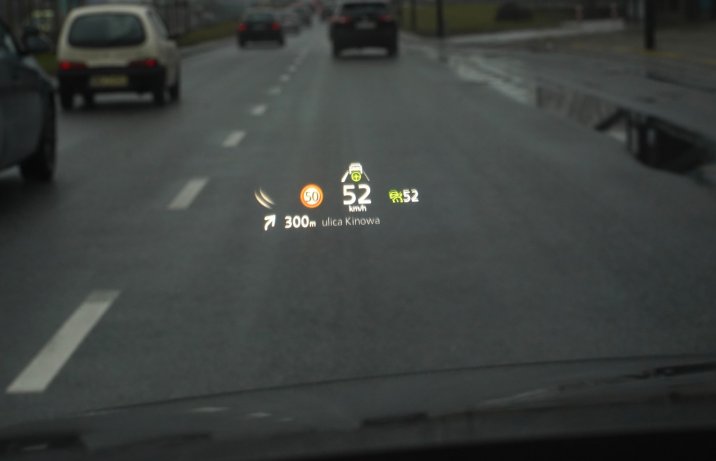 Wyświetlacz przezierny przekazuje wskazówki z nawigacji, informacje o aktualnej i dozwolonej prędkości oraz odczytanych znakach drogowych – także stopu czy zakazu wjazdu.
