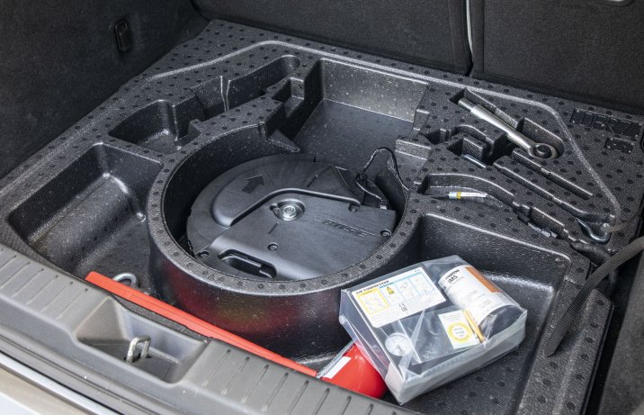 Pod podłogą kufra znajdziemy zestaw naprawczy, kilka praktycznych przegródek oraz – w testowanej wersji – subwoofer nagłośnienia Bose.
