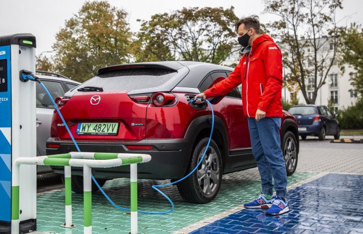 MX-30 ma ładowarkę AC 6,6 kW (ładowanie trwa ponad 5 h), oferuje też ładowanie DC z mocą 50 kW (od 20 do 80% w 40 min). Z gniazdka 230 V „tankowanie” zajmuje 14 h.