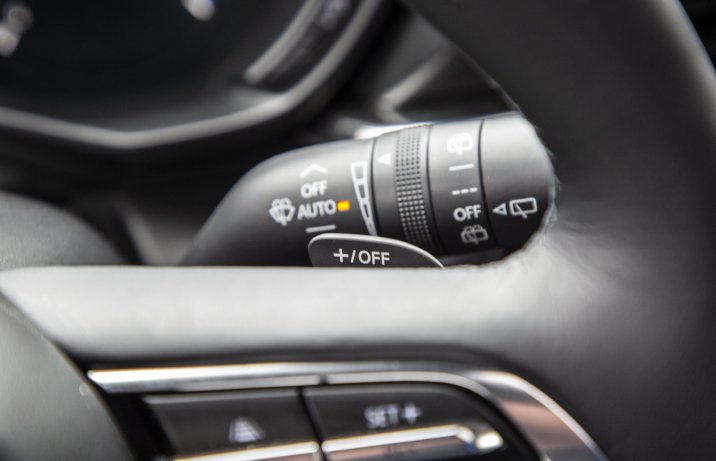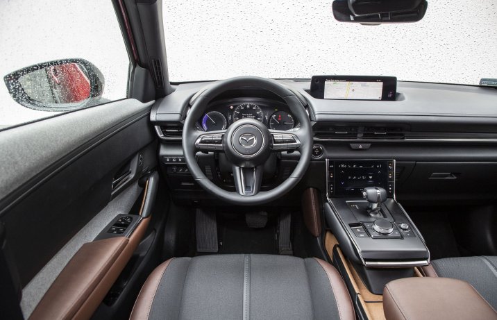 Zza kierownicy MX-30 przypomina SUV-y – fotel można podnieść tu bardzo wysoko i „górować” nad samochodem. Mimo to kierowca jest nieco przytłoczony masywną deską rozdzielczą oraz wysoką linią szyb, które w dodatku mają niewielką powierzchnię. Niestety przeszkadza to przy spoglądaniu przez ramię do tyłu, np. żeby sprawdzić, czy ktoś nie porusza się ścieżką rowerową – tylny słupek jest bardzo szeroki. Maździe brakuje też większej liczby (lub powierzchni) nawiewów na okna. W deszczową pogodę odparowanie szyb częściej niż zazwyczaj wymaga wyłączenia automatycznego trybu klimatyzacji i ręcznego uruchomienia nadmuchu tylko na szyby.
