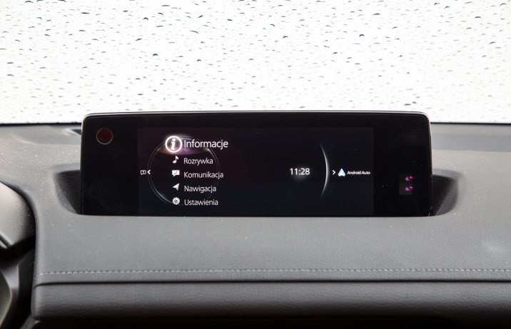 Koncepcja obsługi niewiele odbiega od innych nowych modeli japońskiego producenta – instrumenty są czytelne, a zarządzanie poszczególnymi funkcjami nie nastręcza trudności. Dotyczy to także systemu operacyjnego z minimalistycznym interfejsem, obsługiwanego za pomocą okrągłego kontrolera na konsoli. Do dyspozycji są tu użyteczne sterowanie głosowe (choć wymagające konkretnych komend), interfejsy do integracji smartfonów i niezła nawigacja. We wnętrzu MX-30 znalazł się też jednak ekran dotykowy służący do obsługi wentylacji oraz podgrzewania foteli i kierownicy. Jego menu jest przejrzyste, a matryca błyskawicznie reaguje na dotyk. Mimo to Mazda zadbała o alternatywne, tradycyjne metody sterowania podstawowymi funkcjami i obok ekranu umieściła odpowiednie klawisze oraz przełączniki.