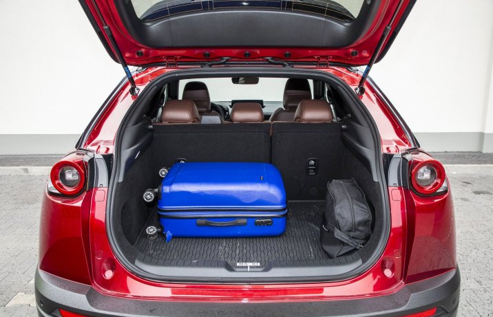 MX-30 w ogóle nie sprawdzi się zresztą jako pojazd dla więcej niż 2 osób. Po pierwsze, żeby otworzyć tylne drzwi, najpierw należy otworzyć przednie – a to wymaga większej przestrzeni z boku auta i okazuje się wyzwaniem na ciasnym parkingu. Po drugie wciśnięcie się do tyłu nie jest łatwe, bo mimo sporego rozstawu osi Mazda oferuje tam skromną ilość miejsca na nogi. Żeby usiąść za wyższym kierowcą lub pasażerem, trzeba podsunąć fotel do przodu i „podzielić się” przestrzenią. Nieco do życzenia pozostawia też wygoda siedzenia – co prawda podróżujący z tyłu mają do dyspozycji dobrze wyprofilowane podłokietniki na drzwiach oraz rozkładany podłokietnik pośrodku, ale z uwagi na nisko zamocowane siedzisko kanapy siedzą „w kucki”, z udami w powietrzu. Wyzwanie stanowi również wysiadanie, ponieważ przy opuszczonych przednich fotelach brakuje miejsca na stopy i trudno je „wydostać”. Na szczęście z tyłu oparcia siedzenia kierowcy znajdują sie klawisze do jego elektrycznego odsuwania i pochylania (zależnie od wersji wyposażenia), dzięki czemu pasażer nie jest uzależniony od pomocy osób podróżujących z przodu.