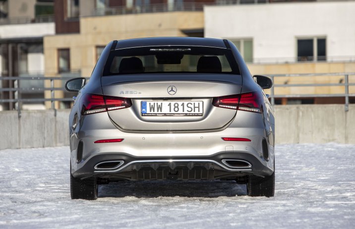 Tył nadwozia został utrzymany w typowej dla nowoczesnych Mercedesów konwencji stylistycznej. Za zderzakiem nie znajdziemy wydechu. Jest on wyprowadzony w centralnej części auta.