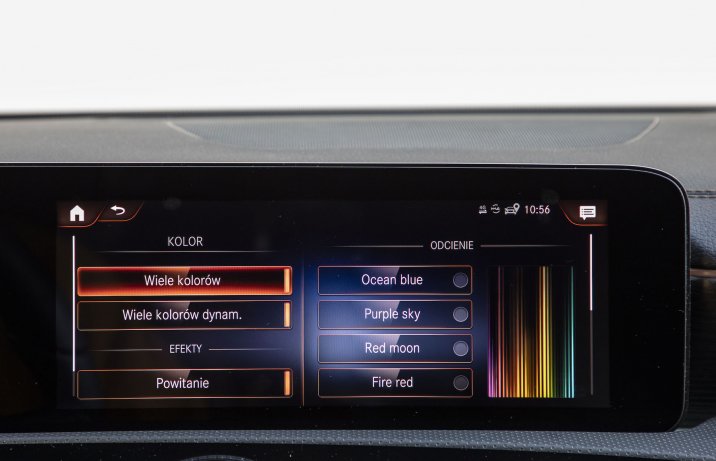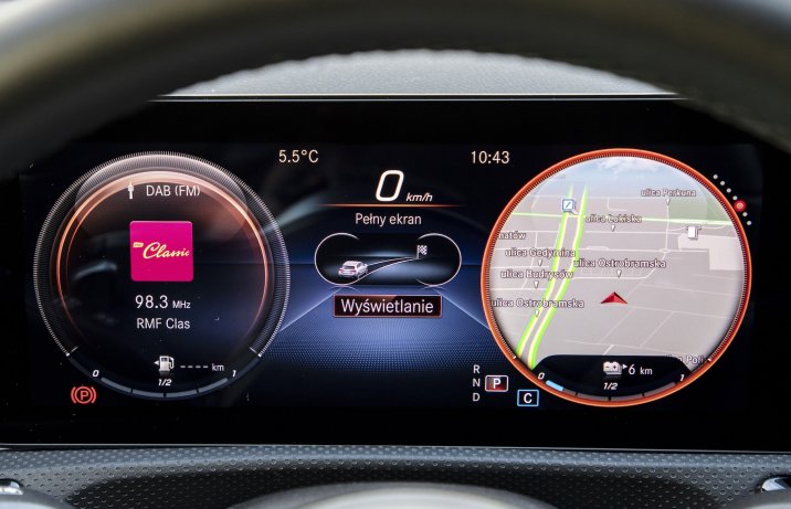 Testowany, świetnie wyposażony samochód imponował możliwościami konfiguracji. Do własnych preferencji można dopasować m.in. barwę diodowych dekorów w kokpicie (dla niezdecydowanych jest nawet możliwość ustawienia płynnie zmieniającej się kolorystyki) czy rodzaj i sposób wyświetlania informacji na ekranach. Nie zabrakło ekranów informujących o aktualnym stanie pracy napędu, ciśnieniu doładowania, temperaturze oleju czy chwilowo rozwijanej mocy. Funkcjami samochodu można sterować dużym gładzikiem na konsoli środkowej lub jego mniejszą wersją, która znalazła się na kierownicy.