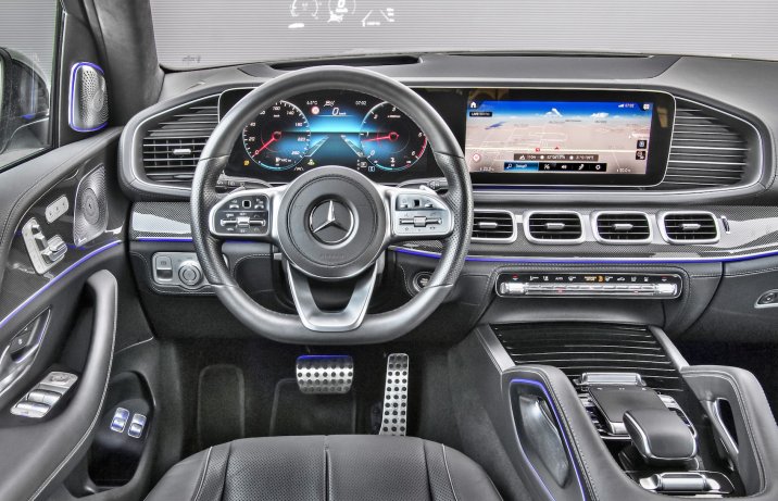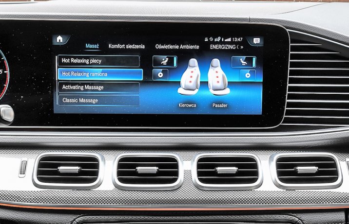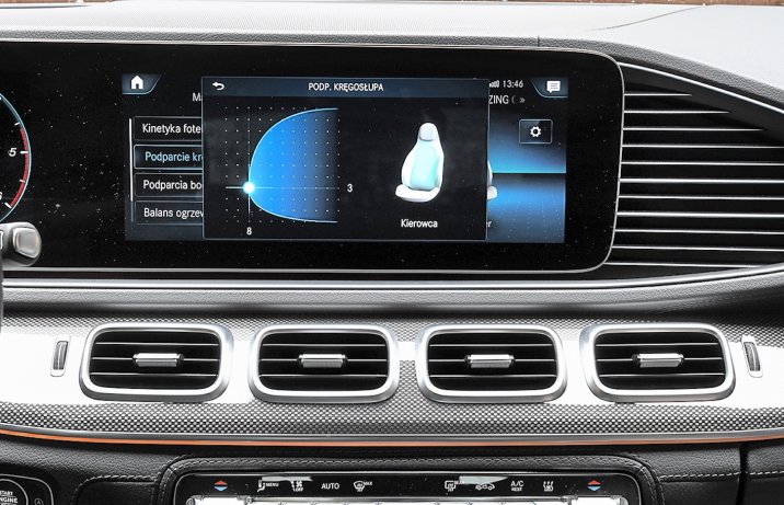 Kokpit GLS-a nie różni się od tego w GLE. Typowo dla współczesnych Mercedesów łączy on rozsądne minimum, jeśli chodzi o tradycyjne instrumenty (służą one do obsługi m.in. oświetlenia i wentylacji) z rozbudowanym systemem operacyjnym. Sterowanie tym ostatnim wymaga nieco wprawy, bo menu ma sporo „pięter”. Trudno jednak nie docenić faktu, że można to robić na kilka sposobów: panelami na kierownicy, gładzikiem w konsoli środkowej i przez dotykowy ekran.
