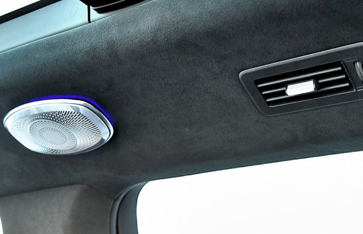 Środkowy i tylny rząd mają „swoje” otwory wentylacyjne. Obok – głośnik opcjonalnego audio Burmester.
