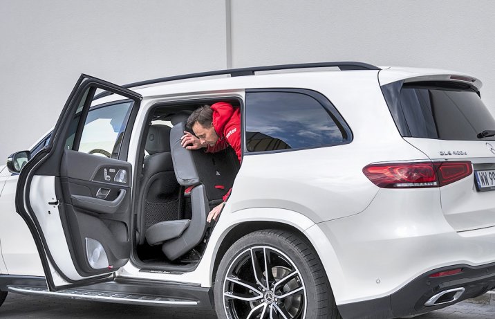 Nawet z kompletem pasażerów GLS oferuje jeszcze sensowny, 355-litrowy bagażnik – to pojemność wykraczająca ponad standardy aut miejskich. Po złożeniu ostatnich siedzeń przestrzeń ta rośnie do 890 l, a gdy złożyć też kanapę (powstaje wówczas płaska powierzchnia) – do 2400 l. Ładowność jest adekwatna do „kalibru” samochodu (835 kg). Plus za schowek na roletę pod podłogą bagażnika, hak na torbę i możliwość zmniejszenia prześwitu tylnej osi celem ułatwienia załadunku – GLS seryjnie otrzymuje bowiem pneumatyczne zawieszenie. Koło dojazdowe wymaga 1694 zł dopłaty.