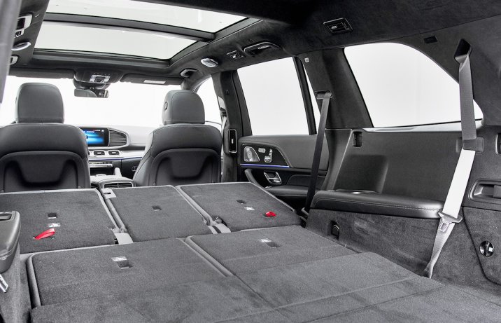 Osobną kwestię stanowi komfort siedzenia – pod tym względem GLS plasuje się na równi z limuzynami. Kanapa jest niezwykle obszerna, zapewnia wyśmienite podparcie ud i ma regulowane pochylenie oparć. Na życzenie dla zewnętrznych miejsc przewidziano nie tylko funkcje ogrzewania i wentylacji, ale również masażu. Co więcej, podobnie jak w X7 zamiast 3-osobowej kanapy można zamówić dwa osobne fotele. Mercedesa z rywalem łączy także w pełni elektryczne sterowanie siedzeniami – do ich regulacji oraz składania nie służą dźwignie, ale przyciski. Ma to jedną wadę: każda operacja musi chwilę potrwać.