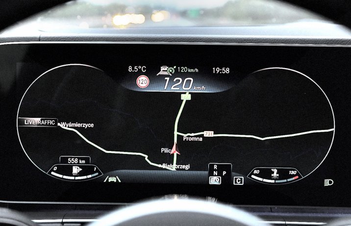 Cieszą wreszcie przemyślane, rzadko spotykane drobiazgi: np. po powtórnym wciśnięciu określonego klawisza menu system powraca do poprzedniego widoku – nie trzeba w tym celu wywoływać ekranu głównego. Na uwagę zasługuje również cała armia systemów wsparcia, w tym adaptacyjny tempomat z uwzględnianiem przebiegu drogi, który płynnie reaguje na zakręty czy skrzyżowania – i jest w tym bardzo skuteczny. W GLS-ie brakuje jednak pojemnościowej kierownicy, wyczuwającej dotyk dłoni. Z tego powodu, podczas jazdy na wprost, zdarza mu się upominać kierowcę, by ten wykonał jakiś ruch.