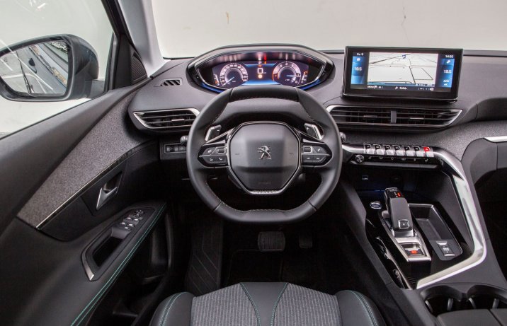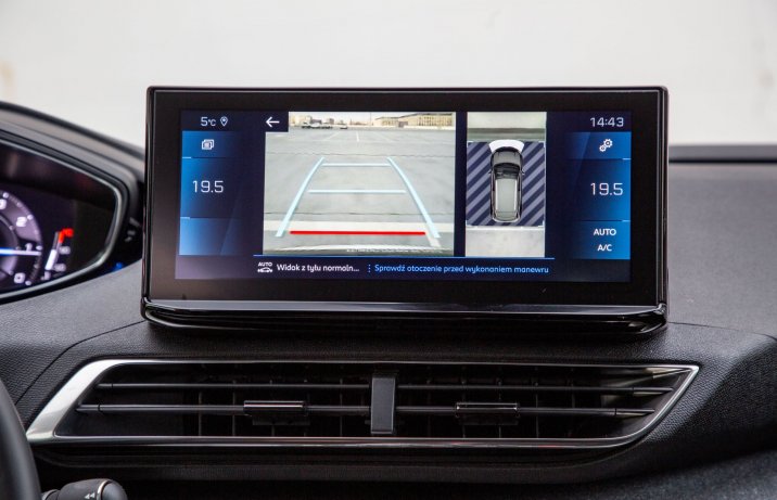 Kabina oczywiście też zachowała swoje dotychczasowe (zupełnie przyzwoite) rozmiary, a deska rozdzielcza – znaną wszystkim architekturę nazwaną przez producenta i-Cockpit. W najnowszym wydaniu zyskała ona większy ekran centralny – u poprzednika miał przekątną 8 cali, teraz 8-calowy znajdziemy tylko w bazowej wersji Active, a testowana Allure i droższe standardowo otrzymują nowy panoramiczny ekran 10''.