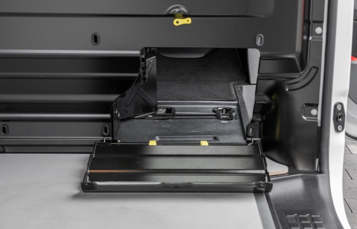 Przestrzeń ładunkowa ma pojemność 5,3 m3. W testowanym aucie burty, podłogę, drzwi oraz nadkola zabezpieczono opcjonalną sklejką pokrytą tworzywem (cena: 4182 zł). Minimalna szerokość między nadkolami to 125,8 cm (maksymalna 163,6 cm), maksymalna długość wynosi zaś 242,7 cm, natomiast wysokość – 139,7 cm. W Vivaro zmieszczą się trzy europalety. Wyjątkowo funkcjonalnym rozwiązaniem jest FlexCargo (+923 zł), czyli podnoszone siedzisko pasażera i otwierane „okienko” na dole przegrody. Dzięki temu w razie potrzeby Vivaro Long może transportować wąskie przedmioty o długości 359 cm.