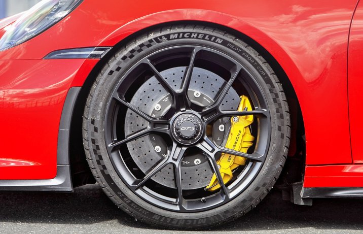 Nowe GT3 porusza się na wyjątkowo przyczepnych oponach Michelin Pilot Sport Cup 2 R. To właśnie dzięki nim osiąga naprawdę imponujące przyspieszenia poprzeczne. Pierwszy zakręt w prawo na naszej pętli 992 pokonuje o 9 km/h szybciej niż 991 GT3 w ostrzejszej odmianie RS. I to pomimo faktu, że w momencie przeprowadzania testu przyczepność na odcinku Grand Prix toru Nurburgring była gorsza niż zazwyczaj. Także tutaj przymusowa przerwa spowodowana pandemią odcisnęła swoje piętno – powierzchnia toru nie jest tak mocno „nagumowana” jak zazwyczaj.