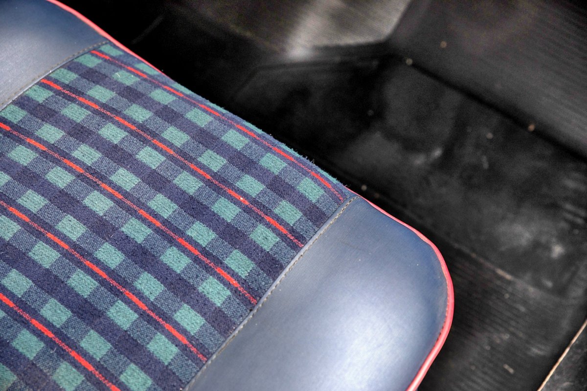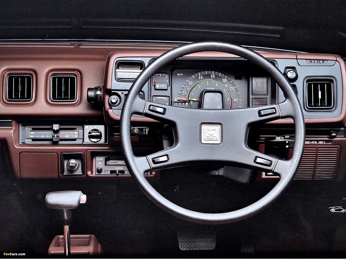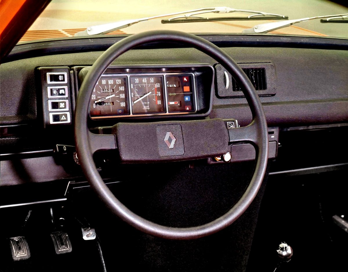 Bardzo prosty kokpit z minimum wskaźników i charakterystycznymi dla aut z tamtych lat otwartymi półkami.