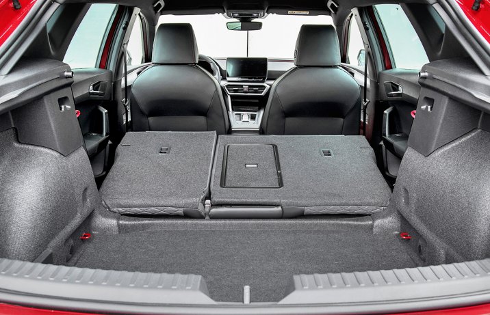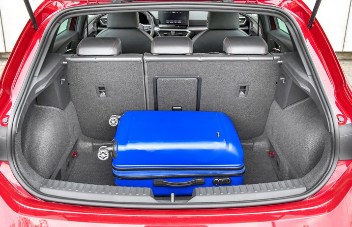 Przy zbliżonych do poprzednika szerokości i wysokości auto zyskało 8,6 cm na długość. Osie są o 5 cm dalej od siebie – i dokładnie tyle dodatkowego miejsca na kolana mają jadący na kanapie. To ważne, bo wszystkie poprzednie Leony były dość ciasne z tyłu. W nowym nawet dalszą podróż bez trudu zniosą 4 wysokie osoby. Piąta może zrezygnować, gdy zobaczy wielki tunel centralny. W aucie o tak dynamicznym charakterze warto dobrze umocować bagaż. 380-litrowy kufer seryjnie oferuje tylko wnękę z boku i dwa haki na burtach. Przydałaby się np. siatka, warto dopłacić 537 zł za ustawiane na dwóch poziomach dno.