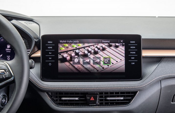 Do naszego testu trafiła topowa odmiana czeskiej nowości. Ze 110-konnym silnikiem i automatem, w najwyższej wersji wyposażeniowej i nowym kolorze Pomarańczowy Phoenix. Ale nie tylko dzięki niemu zwracała na siebie uwagę.