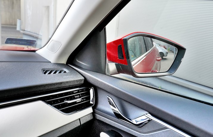 Znane m.in. z Kodiaqa dodatkowe osłony krawędzi drzwi przy wysuwaniu nieco hałasują. Opcja w cenie 650 zł.