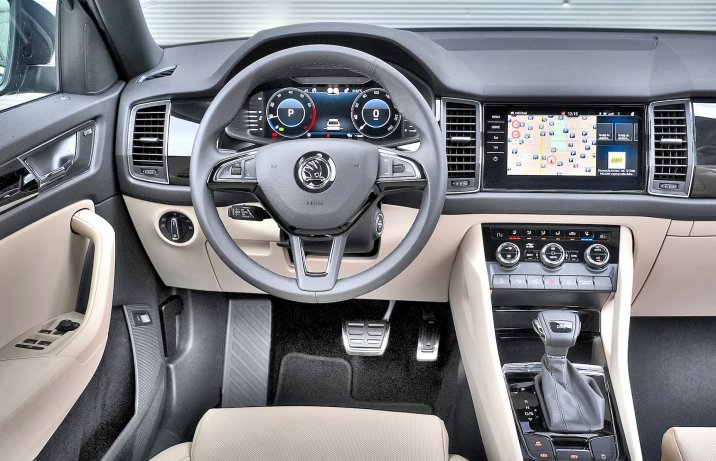 Dwa dodatkowe siedzenia, dostępne za dopłatą 4000 zł, to propozycja raczej awaryjna, ale i tam Skoda zapewnia więcej miejsca niż większość rywali. Do tego należy dodać liczne schowki (w tym obszerne, tapicerowane kieszenie drzwi) oraz przepastny bagażnik o pojemności od 560 do 2005 l, zaopatrzony w szereg udogodnień do mocowania mniejszych przedmiotów. Prosta w rysunku deska rozdzielcza Kodiaqa okazuje się także prosta w obsłudze – bazuje głównie na analogowych instrumentach. System multimedialny z funkcjami online oraz interfejsami do integracji smartfonów ma przejrzyste menu, a jego dotykowy ekran sprawnie odpowiada na dotyk.