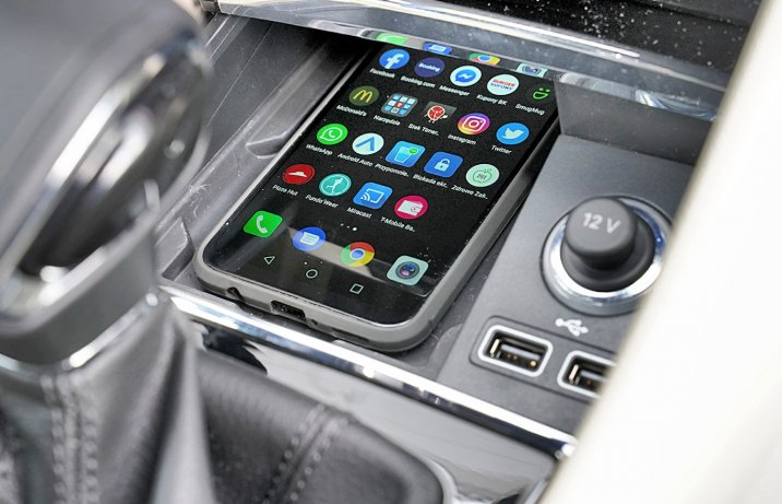 Duża, bezprzewodowa ładowarka dla smartfona (seryjna w wersji L&K) jest umieszczona w optymalnym miejscu – w zasięgu ręki i wzroku.