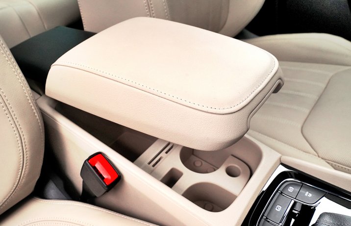 Dwupłaszczyznowo regulowany podłokietnik jest bardzo wygodny. Pod nim kryją się przepastny schowek oraz miniorganizer z przegródkami i uchwytami na napoje.
