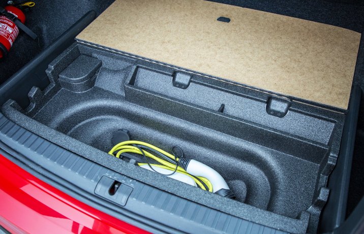 Bagażnik mniejszy niż w wersjach spalinowych (490 wobec 640 l), ale i tak wzorowo funkcjonalny (haki, wnęki).