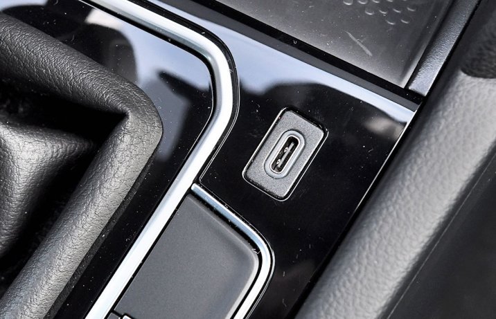 Wszystkie trzy wejścia USB (przy dźwigni automatu – fot. obok, w podłokietniku i z tyłu) są typu C, więc żeby podłączyć ulubiony pendrive z muzyką, trzeba użyć „przejściówki”.