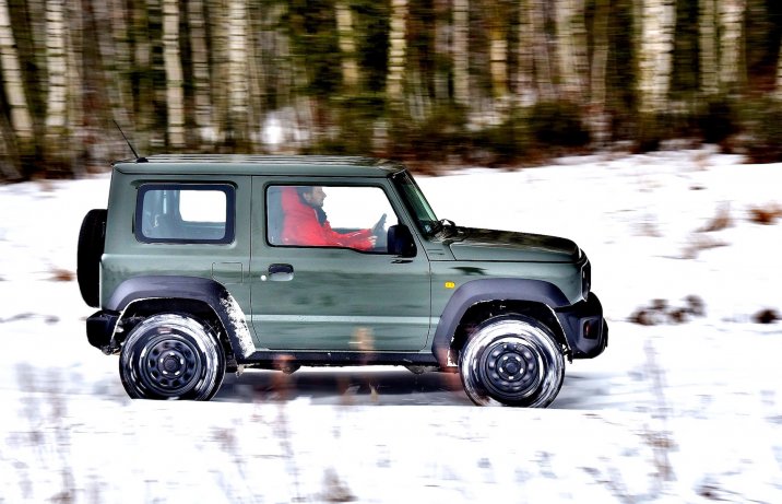W trasie Suzuki pokazuje się z nieco gorszej strony. Na zwykłej drodze krajowej auto prowadzi się stabilnie, komfort jazdy jest wystarczający, a hałas we wnętrzu nie utrudnia rozmów (w pomiarach głośności w kabinie przy 100 km/h Jimny osiąga wynik na poziomie kompaktów). Jedynym problemem są osiągi – gdy droga ma po jednym pasie ruchu w danym kierunku, trzeba rozsądnie planować każde wyprzedzanie (a w jego trakcie pogodzić z wyciem silnika na wysokich obrotach).
