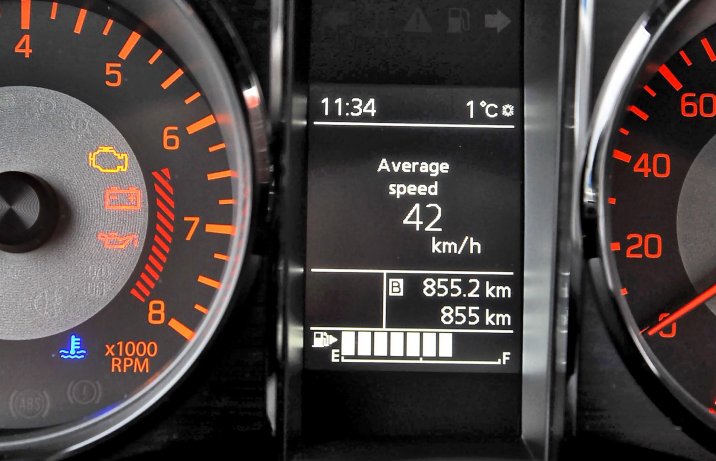 Ekran komputera pokładowego wyświetla białe wskazania na czarnym tle – czytelniej się nie da. Niestety, nie „posługuje się” językiem polskim.