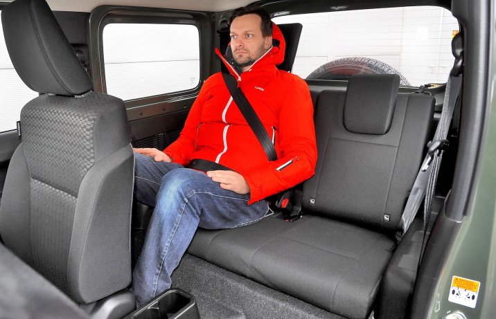 Z przodu – mimo skromnego zakresu ustawień kierownicy (tylko w pionie) i fotela (bez regulacji wysokości i podparcia lędźwiowego) – wygodnie usiądzie i wysoka, i niska osoba. Za to wsiadanie na tył i podróż tam bez narzekania zniosą tylko dzieci. A bagażnik... to raczej schowek. Standardowo ma pojemność 85 l, po złożeniu kanapy rośnie do 377 l (liczone do okien) lub 830 l (po dach). Suzuki popracowało nad tym, żeby życie z nowym Jimnym było przyjemniejsze niż z poprzednikiem. Poprawione tłumienie wstrząsów (choć wciąż gorsze niż np. w miejskich crossoverach) pozwala bez wyrzeczeń jeździć nim do pracy i na zakupy.