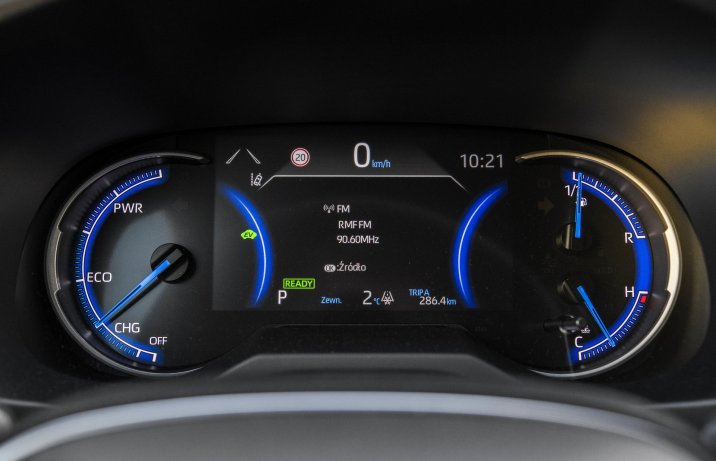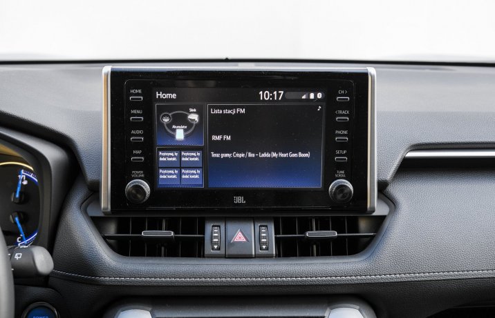 Deska rozdzielcza RAV4 – dogodne rozmieszczenie instrumentów, łatwa obsługa, dobra widoczność w przód i dużo schowków. Szkoda, że oświetlenie kabiny nie jest LED-owe.