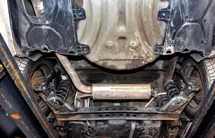 Bardzo dobrze wypadł ten egzemplarz w kwestii zabezpieczenia antykorozyjnego. Widać rdzę na elementach zawieszenia, przedniej ramie pomocniczej. Ale nic, czym trzeba by się już martwić. Wciąż bardzo dobrze wygląda w pełni oryginalny układ wydechowy.